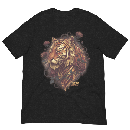 Golden Tiger & Rose Graphic T-Shirt