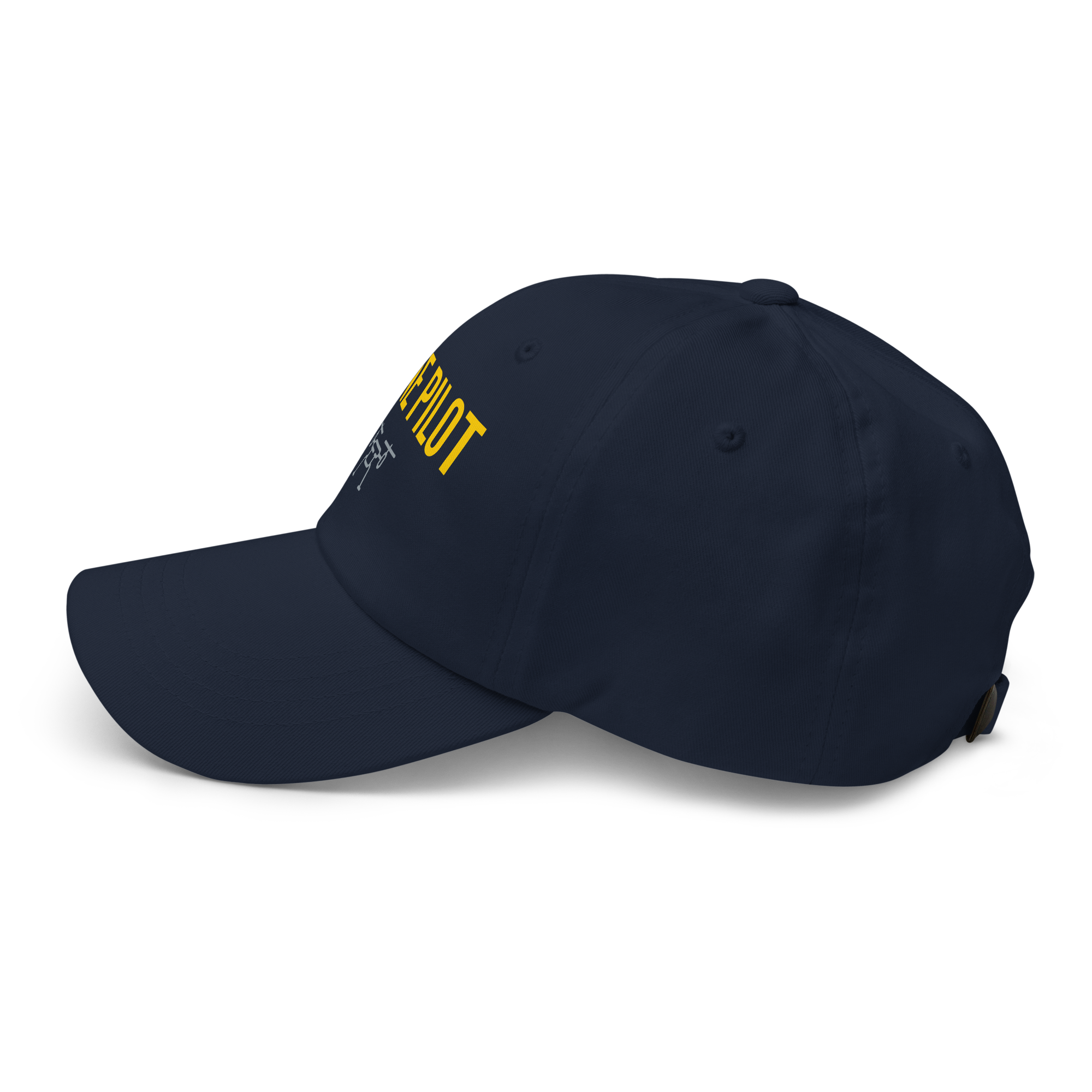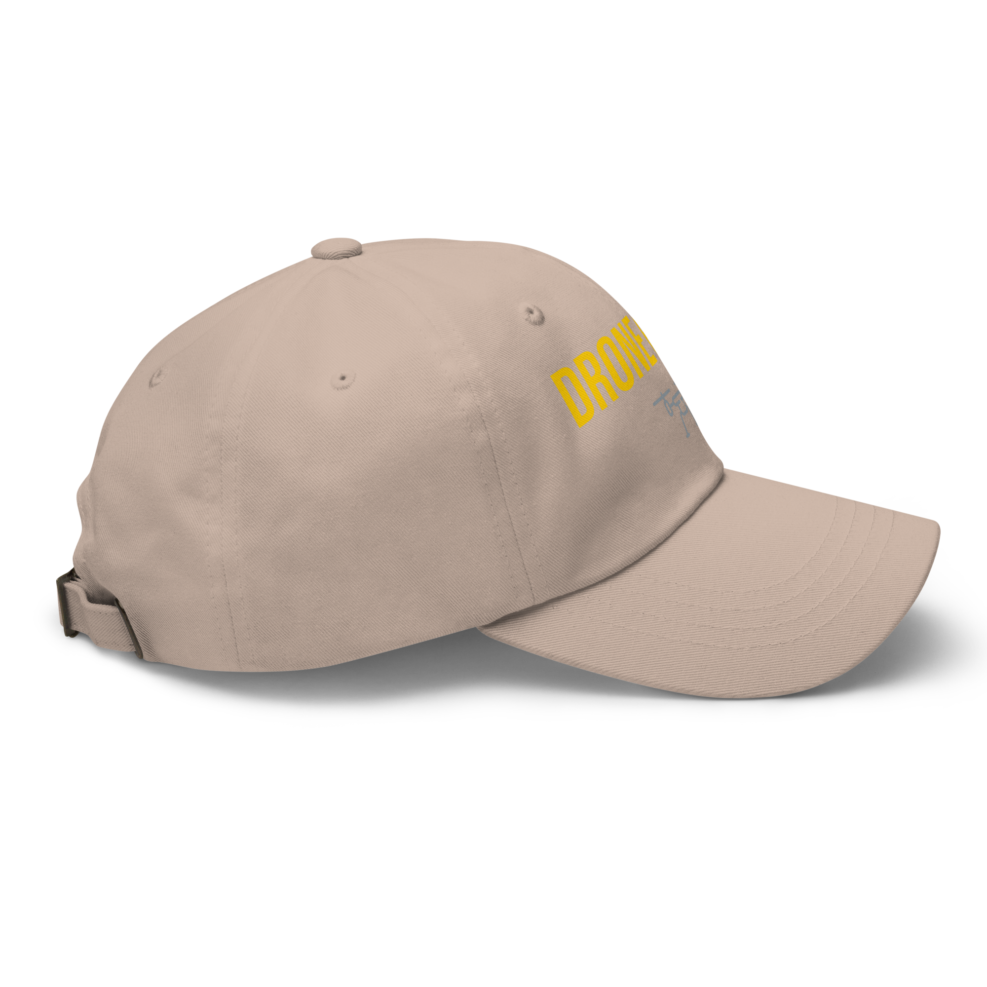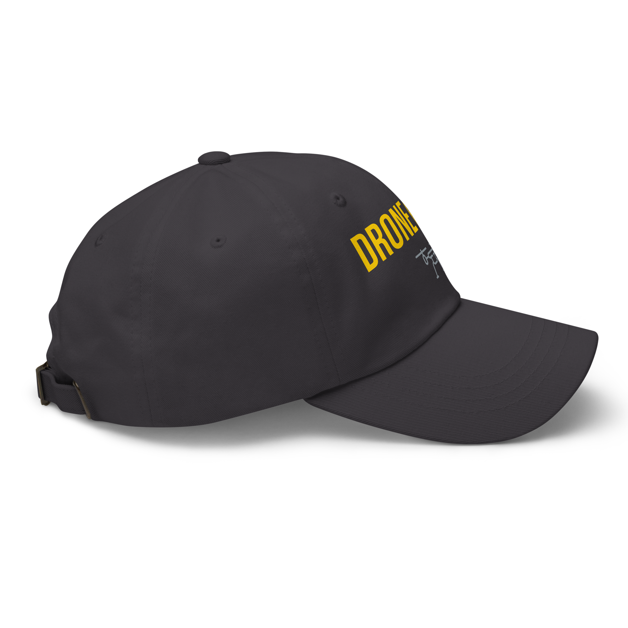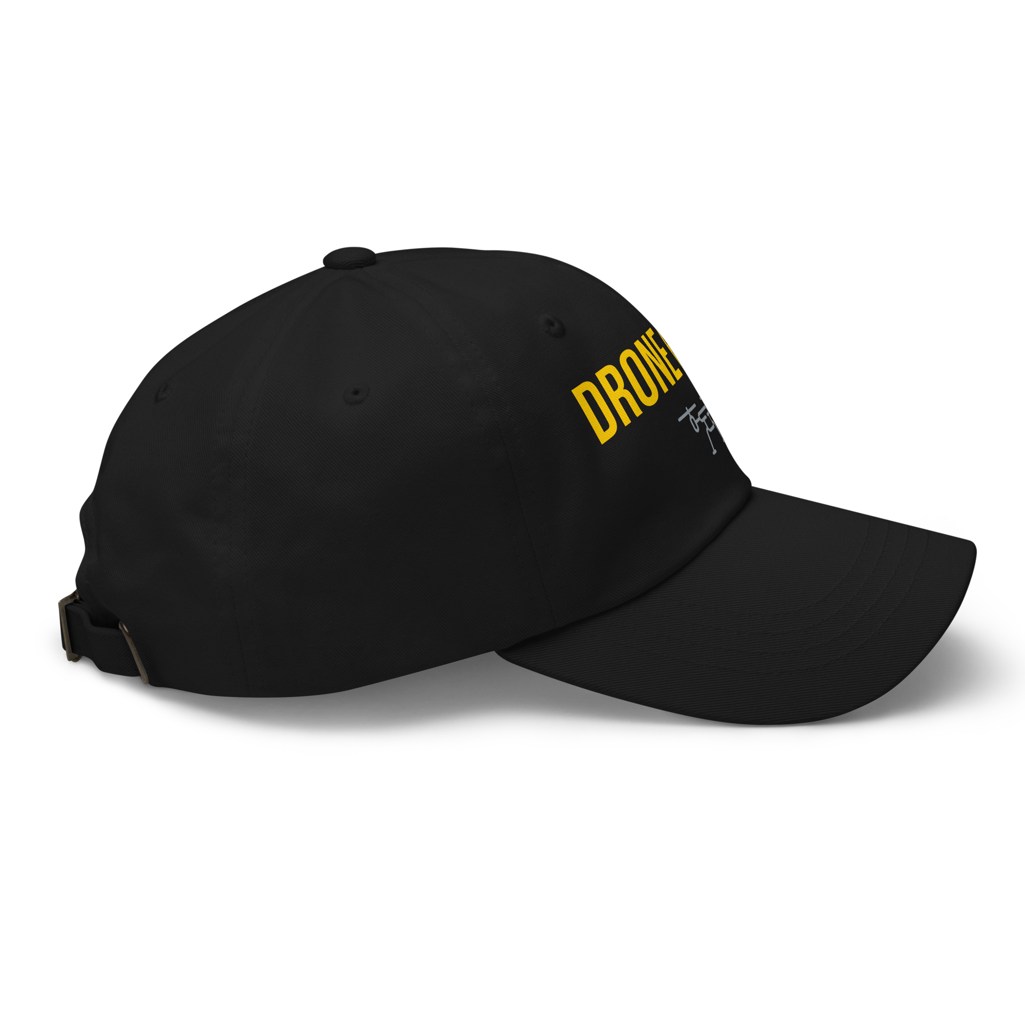 Il cappellino pilota drone di PhotoDroneGuy utilizza il cappellino Yupoong, un brand riconosciuto nel settore sportswear e streetwear per la qualità costruttiva e il comfort autentico.
